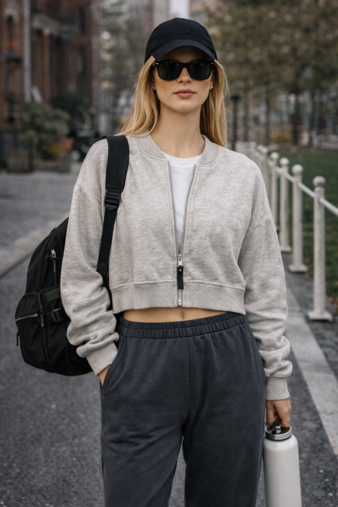 Minimal tasarımı ve fermuar detayıyla hem spor hem klasik kombinlere uyum sağlayan modern kaşe hırka.